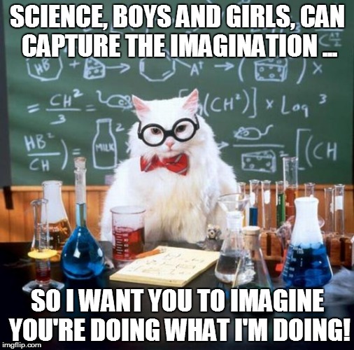 HANDS-OFF TO HANDS-ON | SCIENCE, BOYS AND GIRLS, CAN CAPTURE THE IMAGINATION ... SO I WANT YOU TO IMAGINE YOU'RE DOING WHAT I'M DOING! | image tagged in memes,chemistry cat,science,curriculum | made w/ Imgflip meme maker