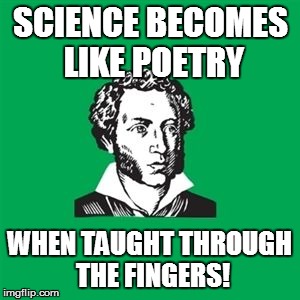 INTERDISCIPLINARY EXPLORATION | SCIENCE BECOMES LIKE POETRY WHEN TAUGHT THROUGH THE FINGERS! | image tagged in typical poet man,science,poetry | made w/ Imgflip meme maker