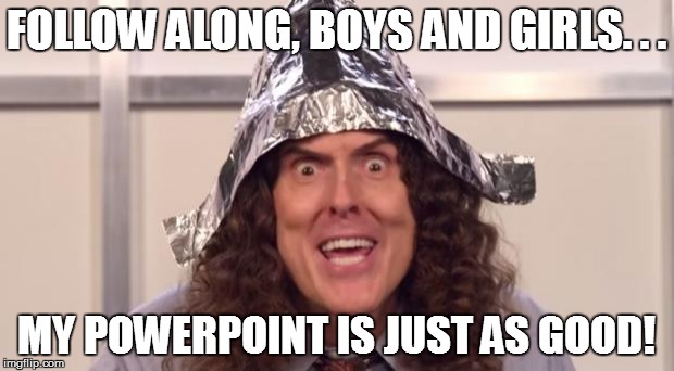 TESTING RESULTS FOILED? | FOLLOW ALONG, BOYS AND GIRLS. . . MY POWERPOINT IS JUST AS GOOD! | image tagged in wierd al foil,science,curriculum | made w/ Imgflip meme maker